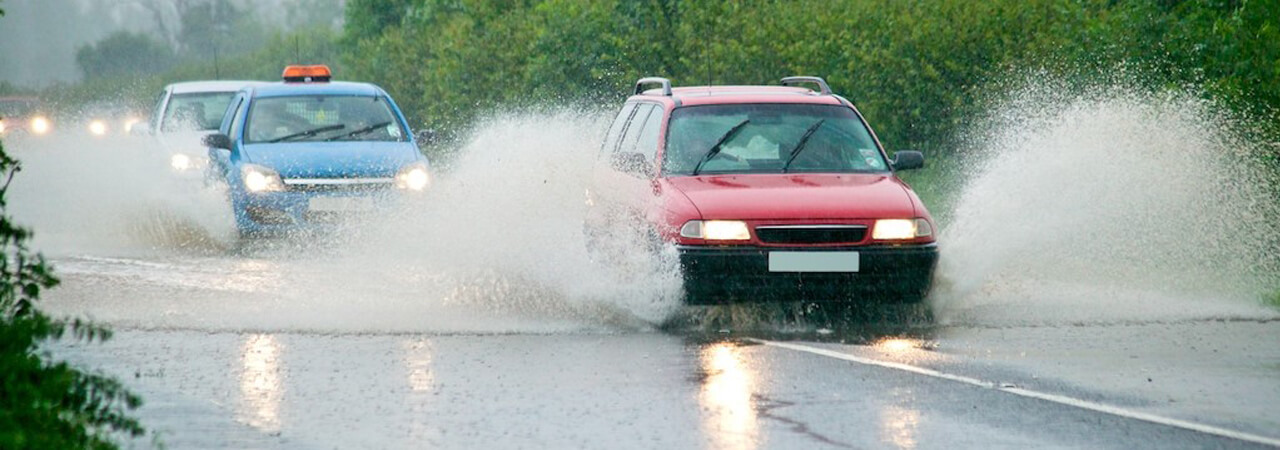 To avoid aquaplaning, ensure your tyres have plenty of tread, keep speeds down, follow the tracks in the road where the car in front has pushed some of the water away and aim to drive smoothly.